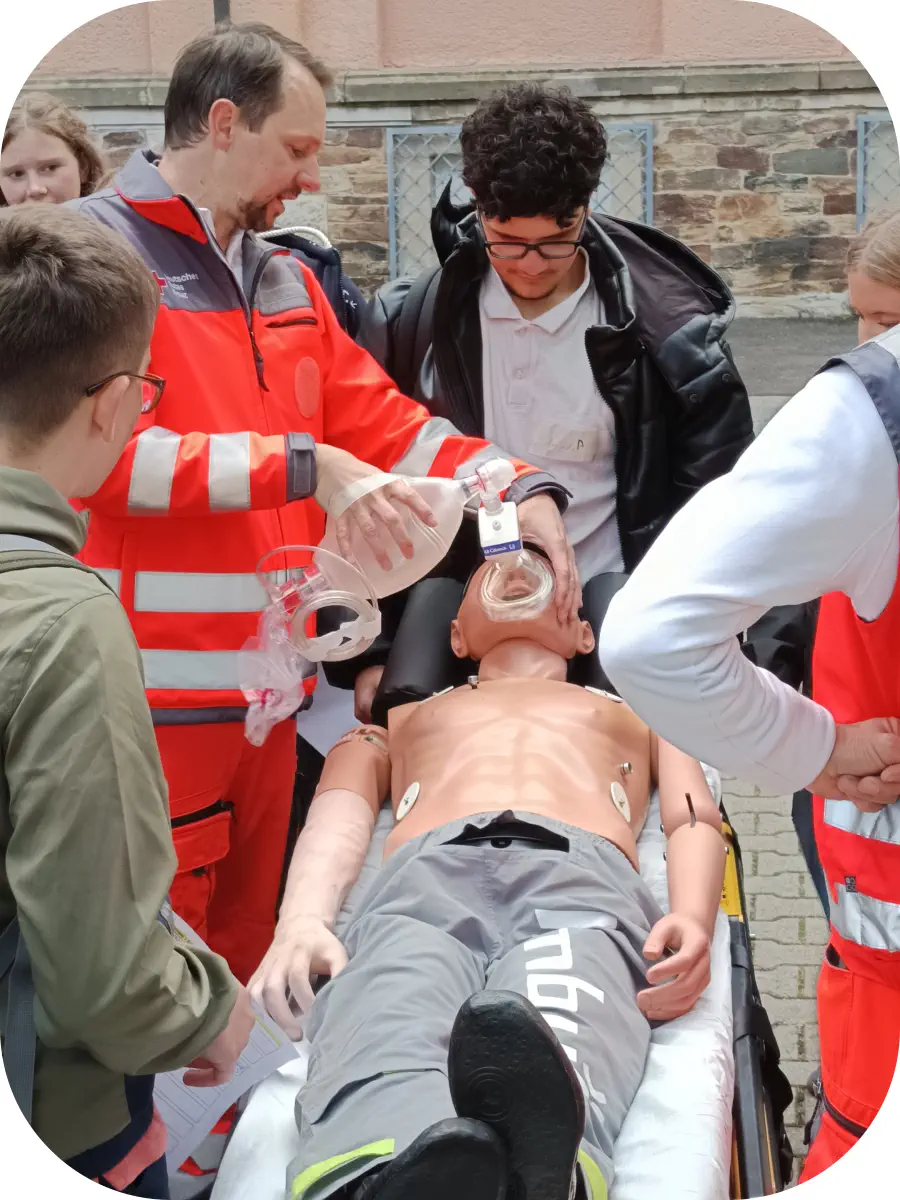 vorgeführt und am lebenden Objekt ausprobiert. Erste Hilfe