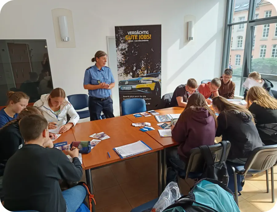Die Berufsberaterin der Polizei Sachsen erläuterte den SuS