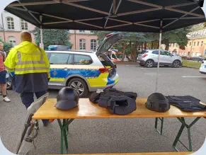 Polizeifahrzeug und Ausrüstung wurden vorgeführt und erklärt. Vom