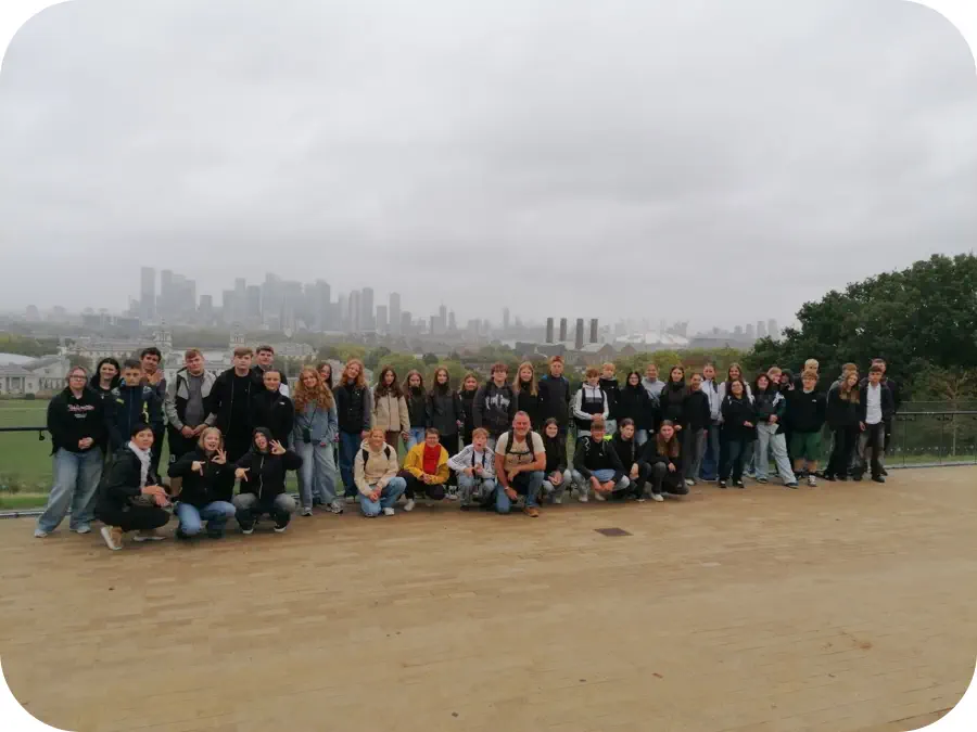 Reisen bildet …Vielleicht auch deshalb begaben sich 43 aufgeregte 9er unserer Schule Mitte September 2025 auf die Fahrt nach Südengland. Gleich zu Beginn gab es eine besondere Challenge: Tief Zack bescherte uns mit mächtigen Sturmböen eine unruhige Überfahrt und die Absage des Besuchs von Dover Castle. Plan B musste her! Kurzerhand wurde der Bus nach Canterbury umgeleitet, wo beim Spaziergang im Sonnenschein eifrig ein Städtequiz gelöst wurde.Nach der Ankunft in Hastings trafen wir die Gastfamilien, bei denen wir die folgenden 3 Nächte verbringen sollten. Wo sonst könnte man Land und Leute besser kennen lernen? Anfänglich etwas skeptisch und zaghaft ahnten wir nicht, dass Tage später beim Abschied so manche Träne rollen würde.An den nächsten Tagen wartete ein abwechslungsreiches Programm auf uns. So erkundeten wir das alte Seebad Brighton mit dem bombastischen Royal Pavillon, wanderten entlang der majestätischen Kreideklippen von Beachy Head und lernten das Gruseln in den Smugglers Caves von Hastings. Absolutes Highlight war jedoch der Tagesausflug in die Hauptstadt London, die wir dank unseres super Busfahrers trotz Staus in der morgendlichen Rushhour und Umleitungen sicher erreichten. Endlich konnten wir all die Sehenswürdigkeiten live in Augenschein nehmen, bei der Fahrt mit dem London Eye sogar aus der Vogelperspektive, und toll angeleuchtet bei der abendlichen Bootsfahrt im Dunkel nach einem ausgiebigen Dinner bei Pizza Hut.Unzählige Fotos werden noch lange die Erinnerung an dieses Abenteuer wachhalten und die gemachten Erfahrungen haben die Motivation für das Erlernen der englischen Sprache gestärkt. Alle sind sich einig: Was für eine erlebnisreiche und wunderbare Reise!